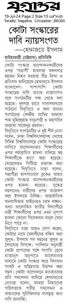 কোটা সংস্কারের দাবি ন্যায়সংগত -হেফাজতে ইসলাম