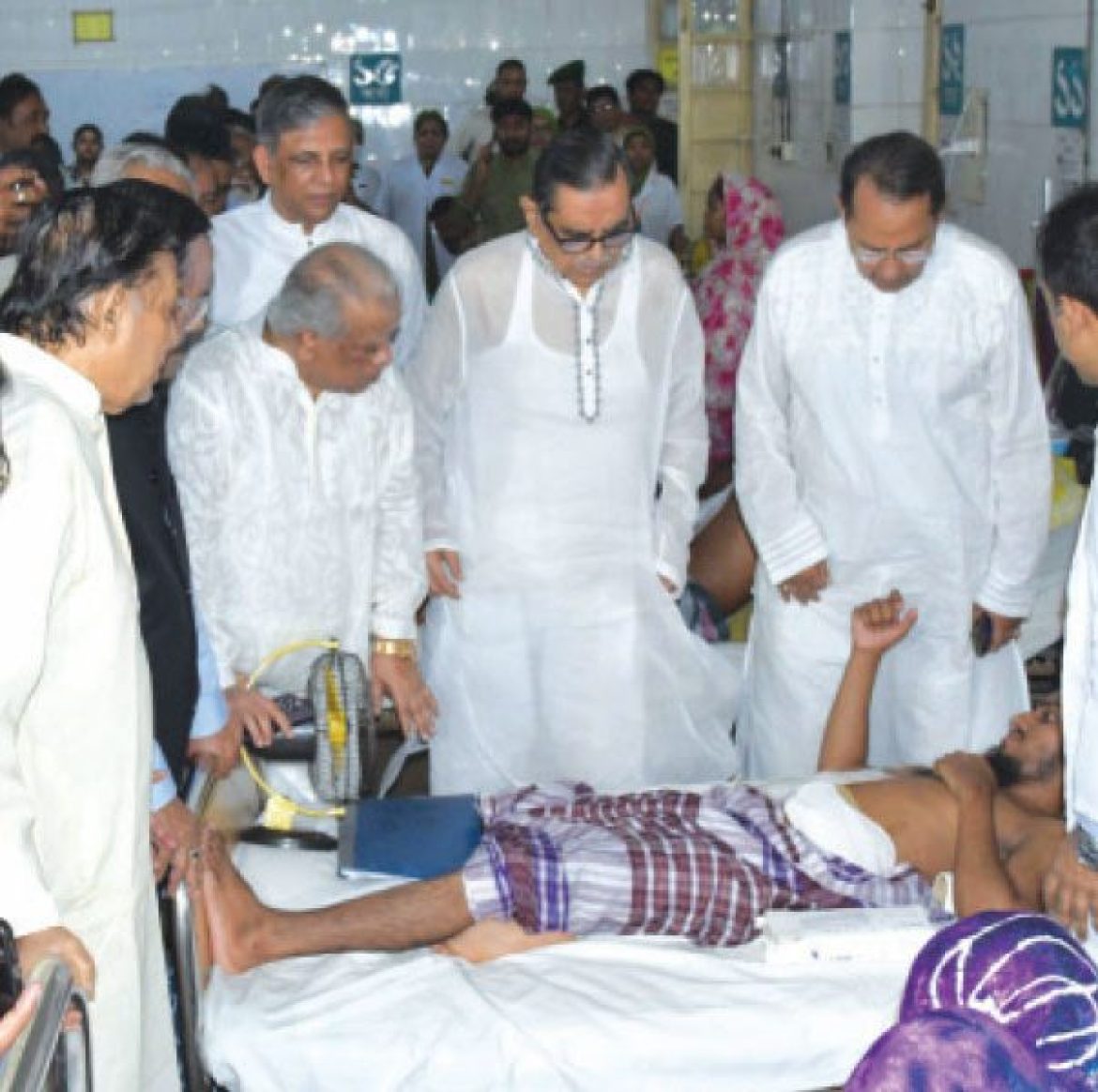 কোটা সংস্কার আন্দোলনে সহিংসতার ঘটনায় আহতদের খোঁজখবর নিতে রাজধানীর বিভিন্ন হাসপাতালে ছুটে যান ১৪ দলীয় জোটের নেতারা। ছবিটি শনিবার ঢাকা মেডিকেল কলেজ হাসপাতাল থেকে তোলা
