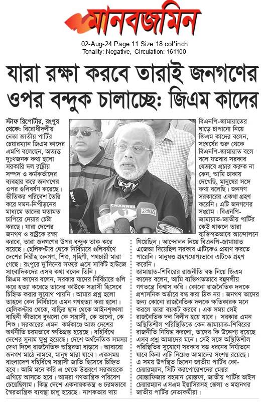 যারা রক্ষা করবে তারাই জনগণের ওপর বন্দুক চালাচ্ছে: জিএম কাদের