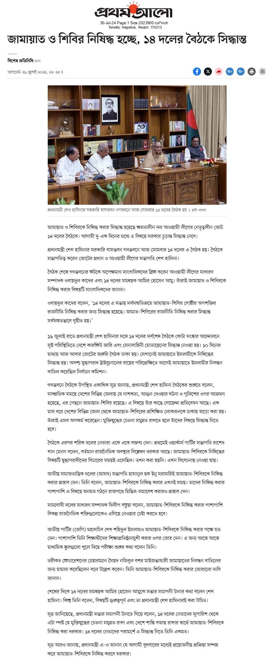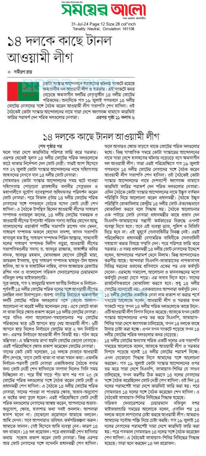 নিউজ ক্লিপসঃজামায়াত ও শিবির নিষিদ্ধ হচ্ছে, ১৪ দলের বৈঠকে সিদ্ধান্ত ১৪ দলকে কাছে টানল আওয়ামী লীগ ১৪ দলের বৈঠকে ডিবির হারুনের কড়া সমালোচনা