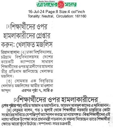 সশিক্ষার্থীদের ওপর হামলাকারীদের গ্রেপ্তার করুন: খেলাফত মজলিস