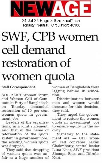 SWF, CPB women cell demand restoration of women quota
