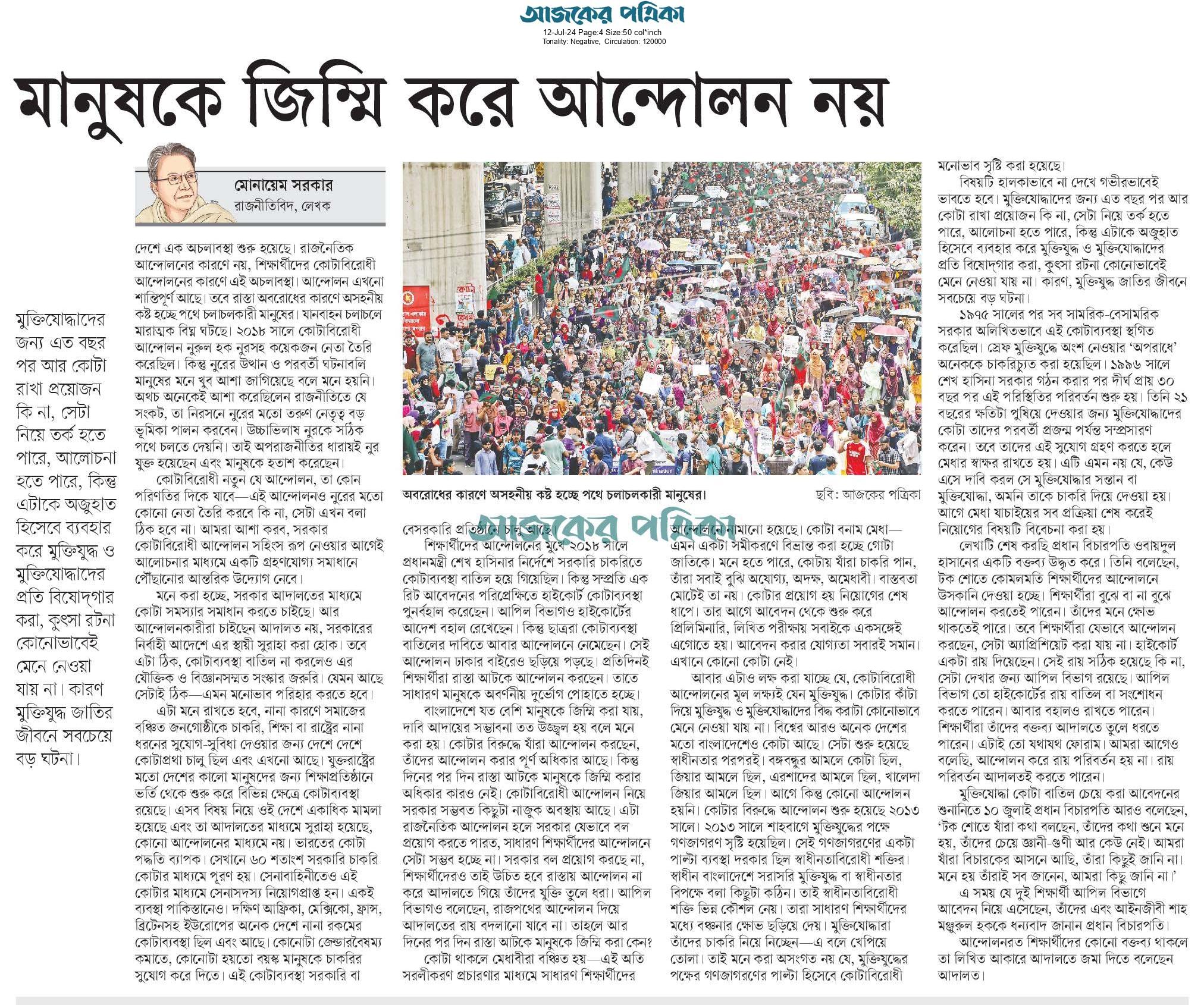 ৬ জুলাইসরকারের জন্য অশনিসংকেত কি ১২ জুলাইমানুষকে জিম্মি করে আন্দোলন নয় ২২ জুলাইএই দশকের সবচেয়ে দুঃখজনক ঘটনা