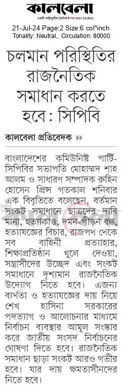 চলমান পরিস্থিতির রাজনৈতিক সমাধান করতে হবে: সিপিবি
