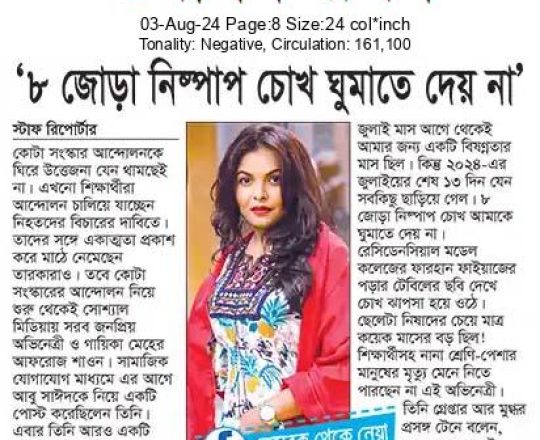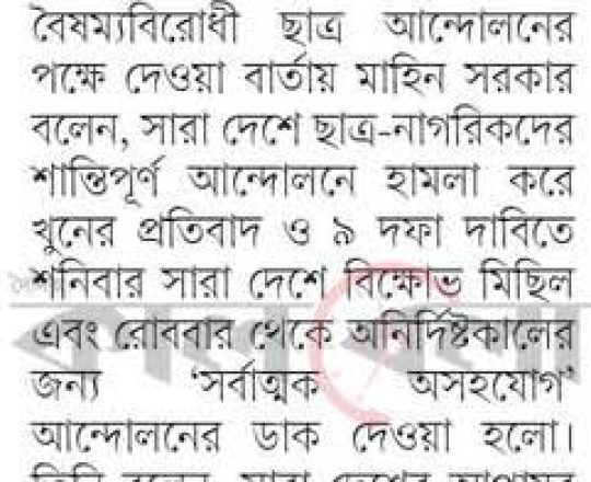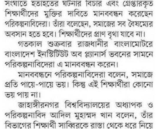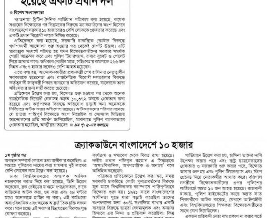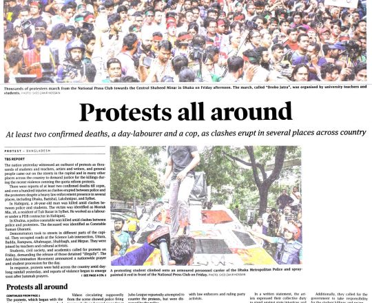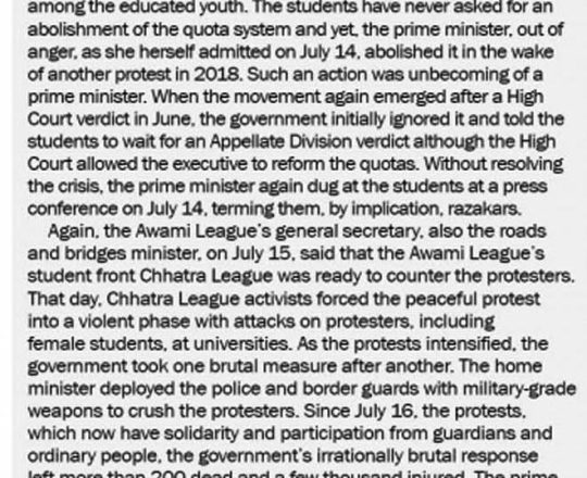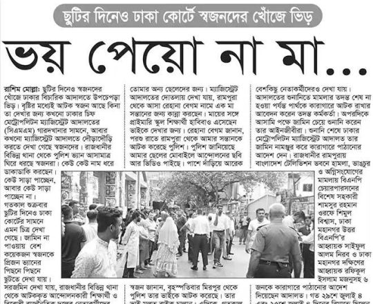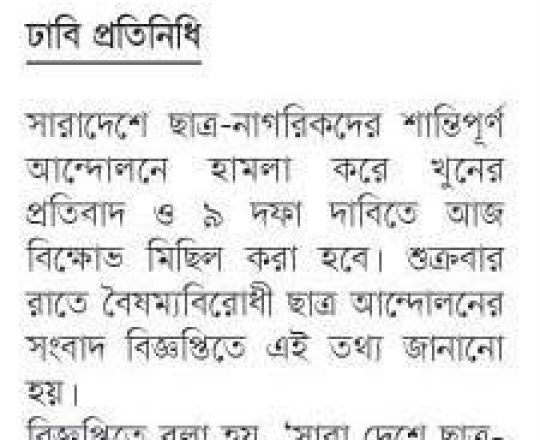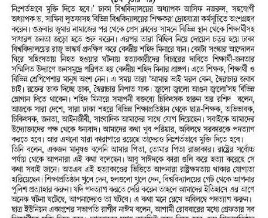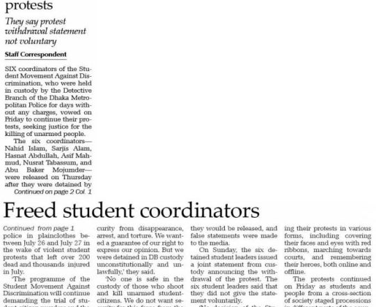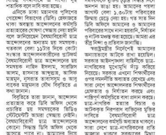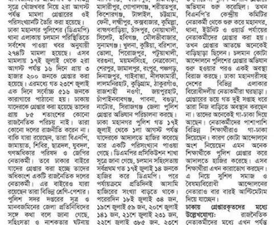 Daily Star, 3 August 2024, 'Stop mass arrests, release students'