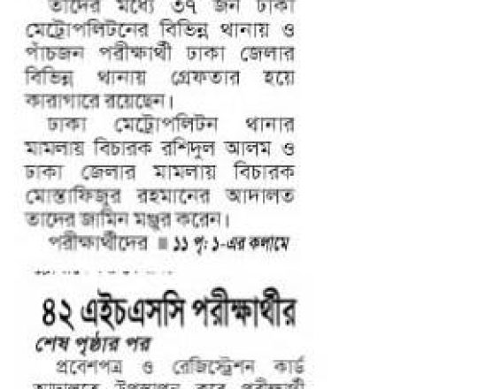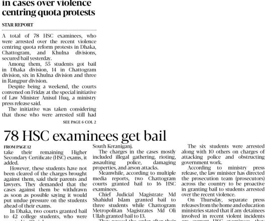 Daily Star, 3 August 2024, 78 HSC examinees get bail