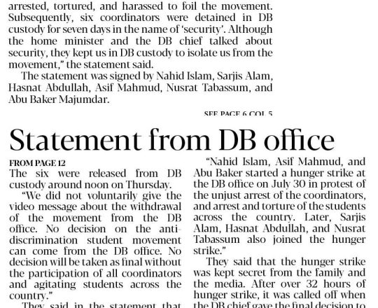 Daily Star, 3 August 2024, 'Statement from DB office was not voluntary'