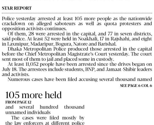 Daily Star, 3 August 2024, 105 more held in nationwide drives
