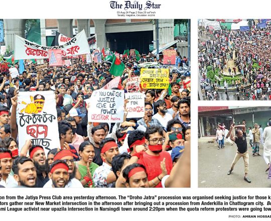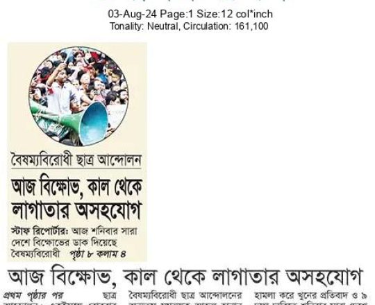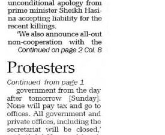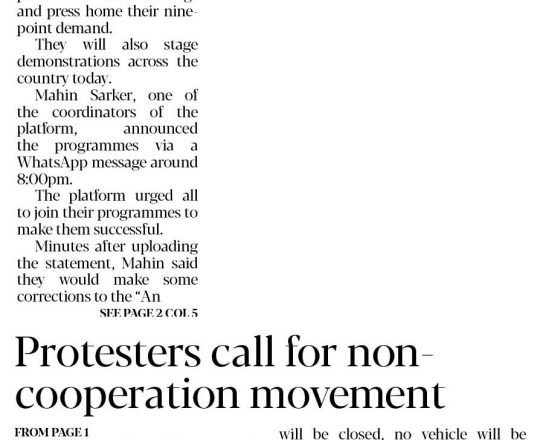 Daily Star, 3 August 2024, Protesters call for non-cooperation movement