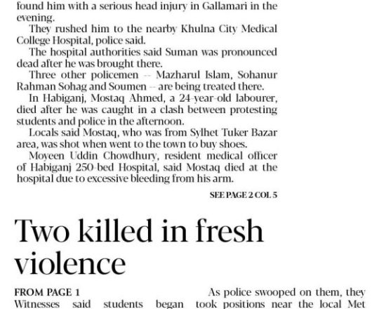 Daily Star, 3 August 2024, Two killed in fresh violence