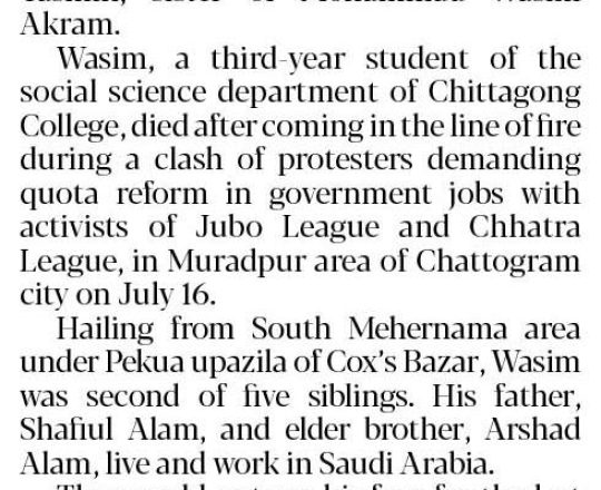Daily Star, 3 August 2024, He aspired to be a teacher