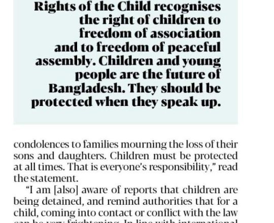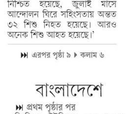 প্রথম আলো, ৩ আগস্ট ২০২৪, বাংলাদেশে সহিংসতায় অন্তত ৩২ শিশুর মৃত্যু