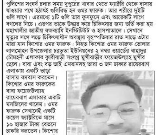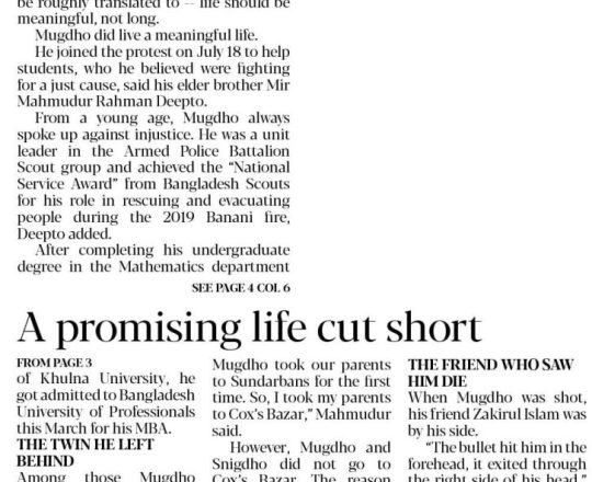 Daily Star, 3 August 2024, A promising life cut short by bullet