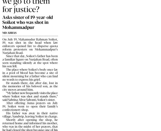 Daily Star, 3 August 2024, Police killed my brother. Should we go to them for justice?