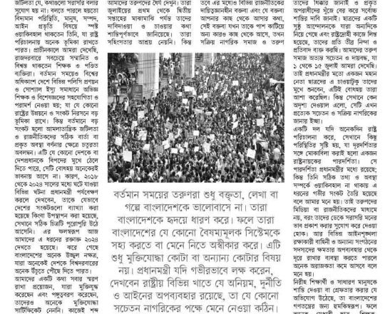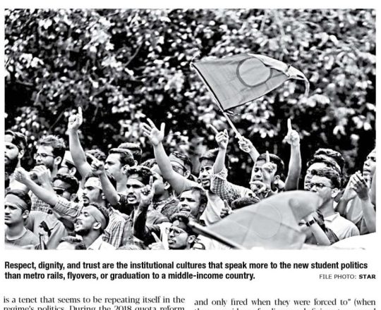 Daily Star, 3 August 2024, New student politics demands respect, dignity, and trust