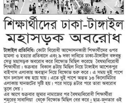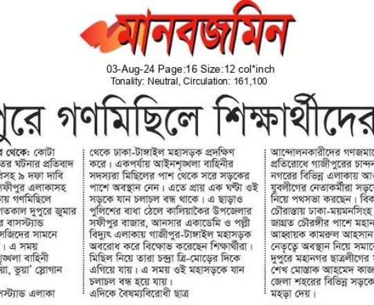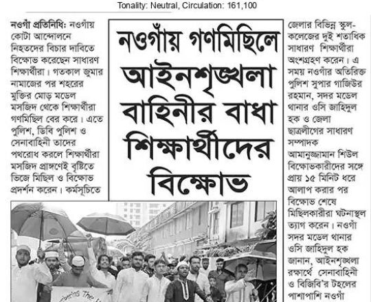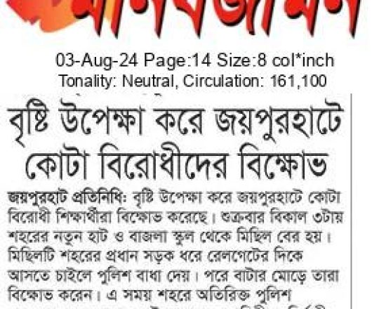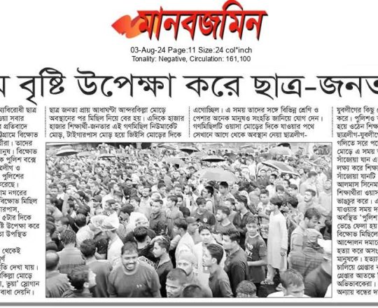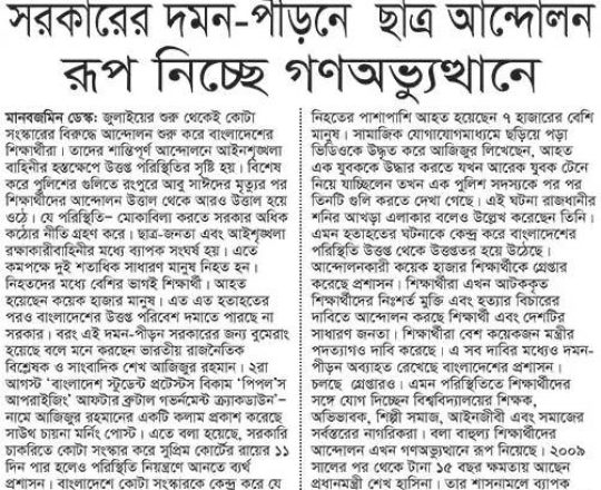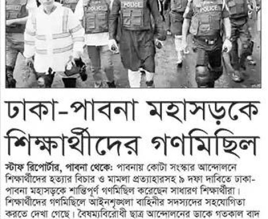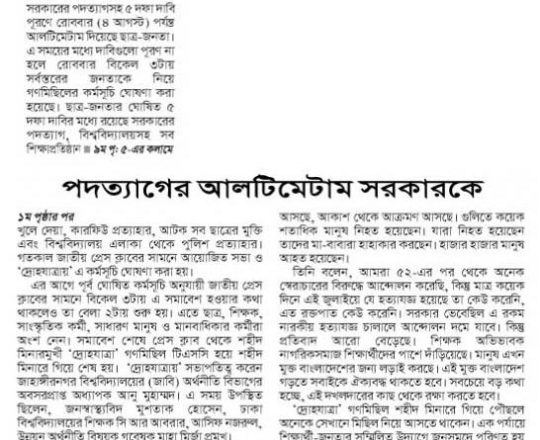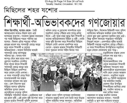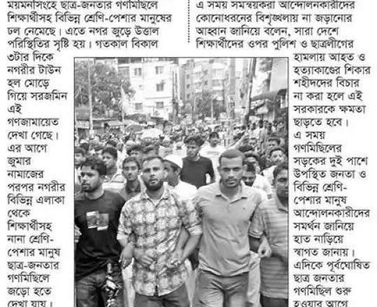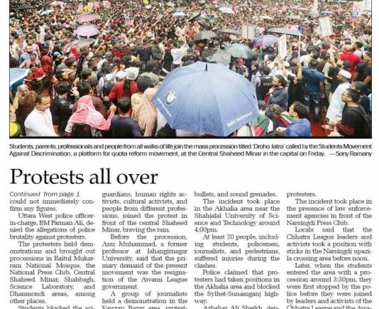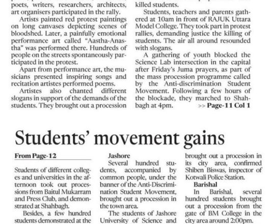 Daily Sun, 3 August 2024, Students' movement gains momentum with widespread support