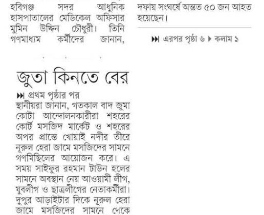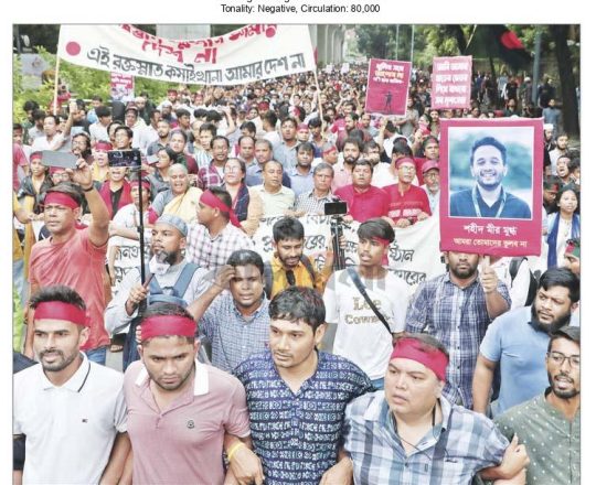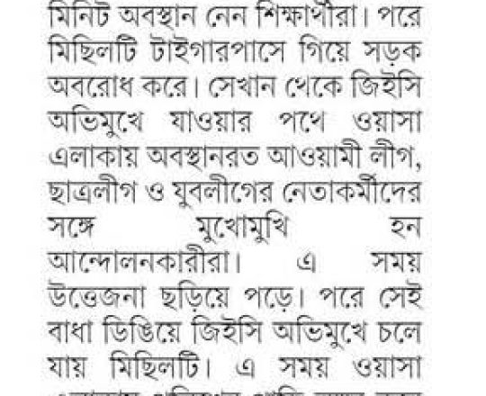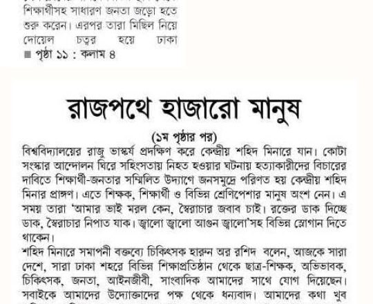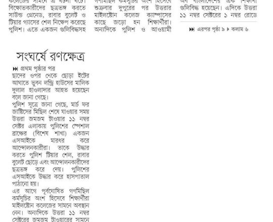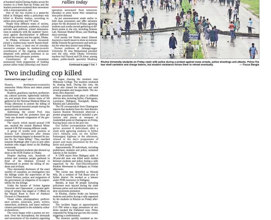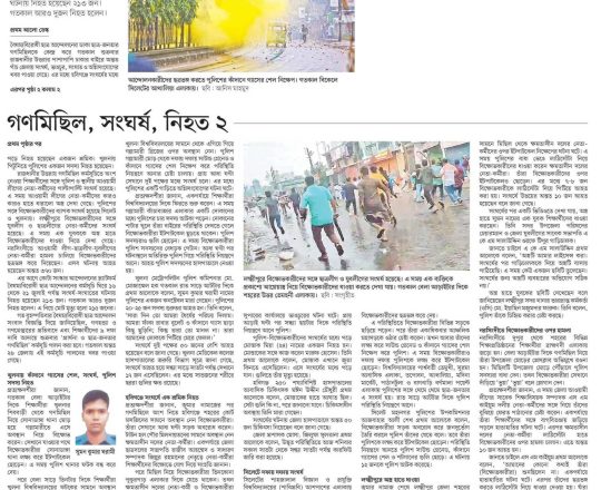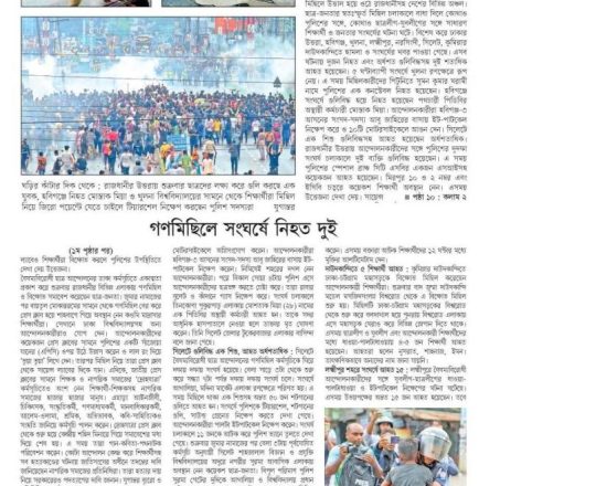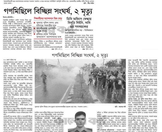 যুগান্তর, ৩ আগস্ট ২০২৪, গণমিছিলে সংঘর্ষে নিহত দুই
