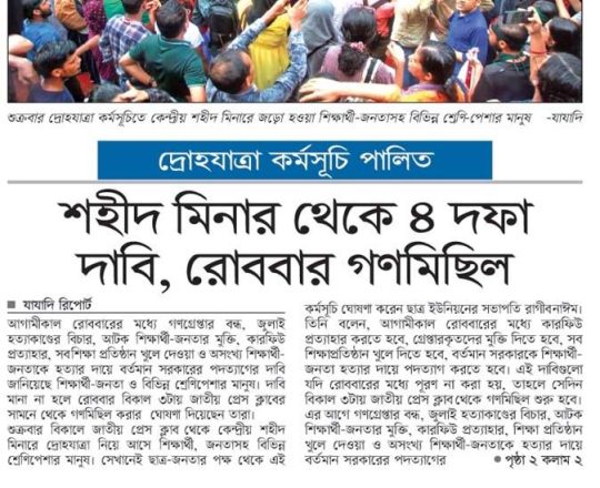 যায়যায়দিন, ৩ আগস্ট ২০২৪, শহীদ মিনার থেকে ৪ দফা দাবি, রোববার গণমিছিল