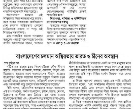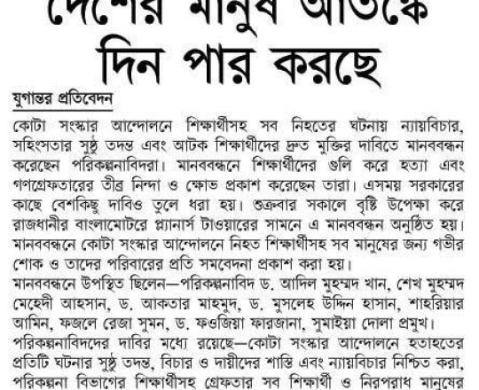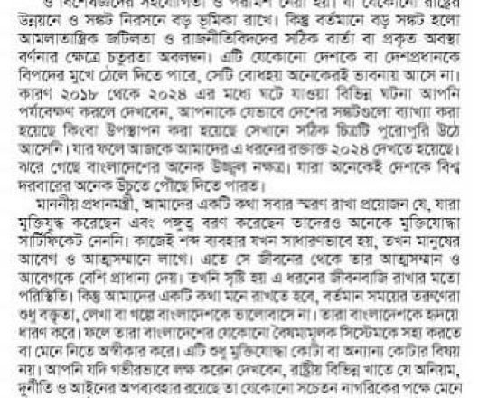 যুগান্তর, ৩ আগস্ট ২০২৪, প্রধানমন্ত্রীকে প্রকৃত চিত্র জানানো হয় না কেন?- ড. মোসা. রেবেকা সুলতানা