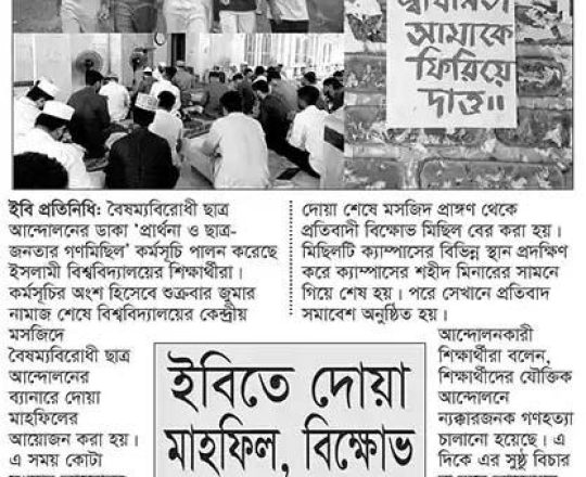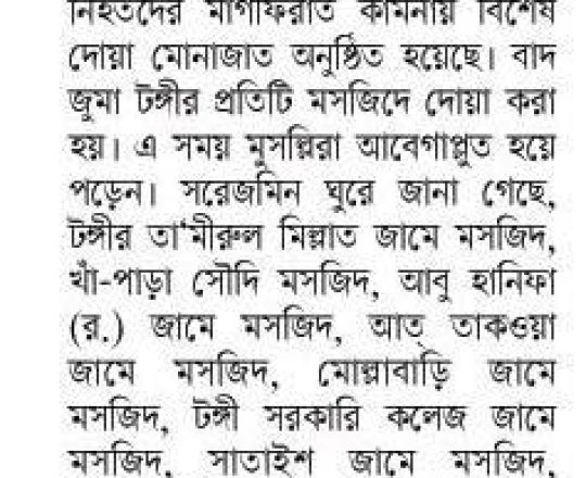 যুগান্তর, ৩ আগস্ট ২০২৪, টঙ্গীতে নিহতদের মাগফিরাত কামনায় দোয়া