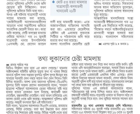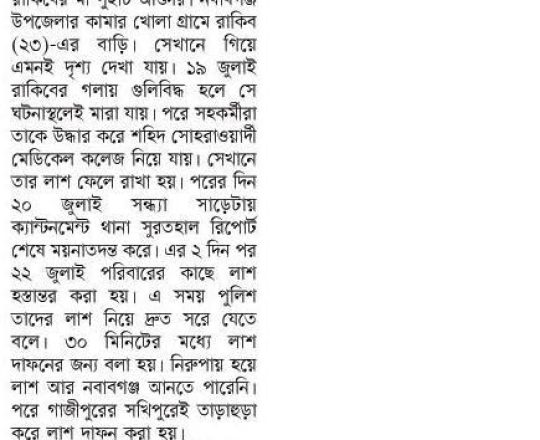 যুগান্তর, ৩ আগস্ট ২০২৪, হতাহতদের এজাহারে বৈসাদৃশ্য