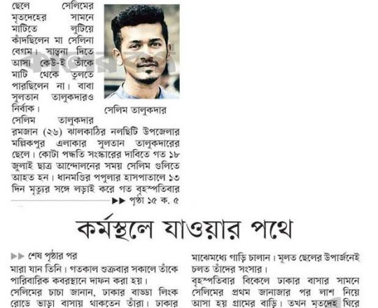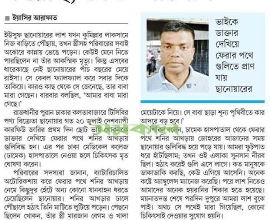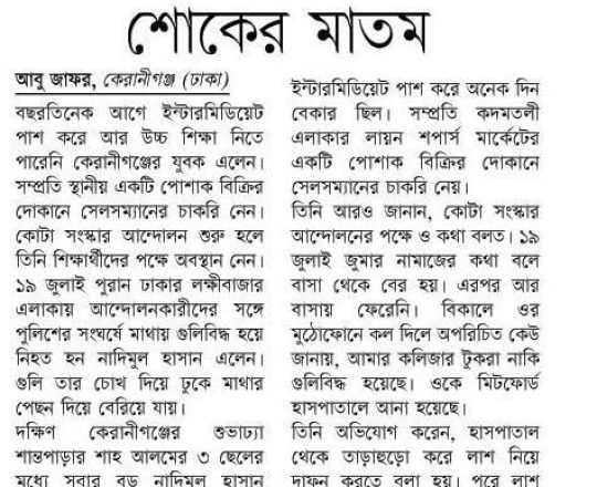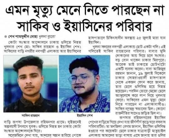 যুগান্তর, ৩ আগস্ট ২০২৪, কোটা সংস্কার আন্দোলন রাজধানীসহ সারা দেশে নিহত যারা