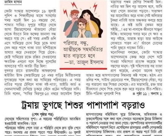 যুগান্তর, ৩ আগস্ট ২০২৪, ট্রমায় ভুগছে শিশুর পাশাপাশি বড়রাও