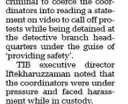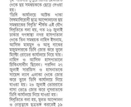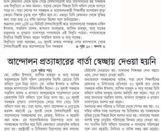 সমকাল, ৩ আগস্ট ২০২৪, আন্দোলন প্রত্যাহারের বিবৃতি স্বেচ্ছায় দিইনি