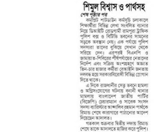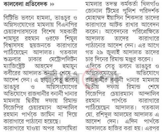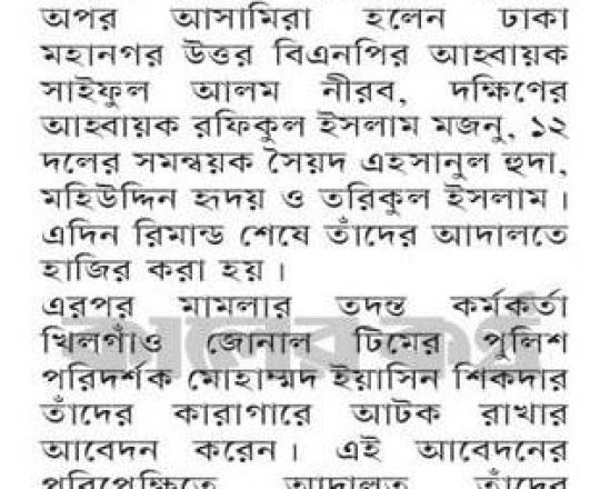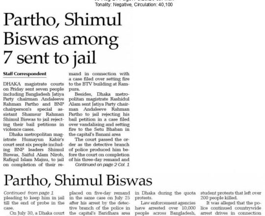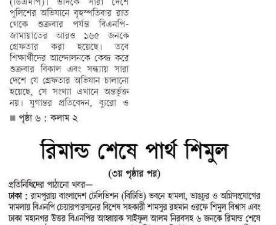 যুগান্তর, ৩ আগস্ট ২০২৪, রিমান্ড শেষে পার্থ শিমুল, নিরবসহ ৭ জন কারাগারে আরও ১৬৫ জন গ্রেফতার