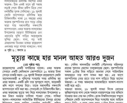 যুগান্তর, ৩ আগস্ট ২০২৪, মৃত্যুর কাছে হার মানল আহত আরও দুজন