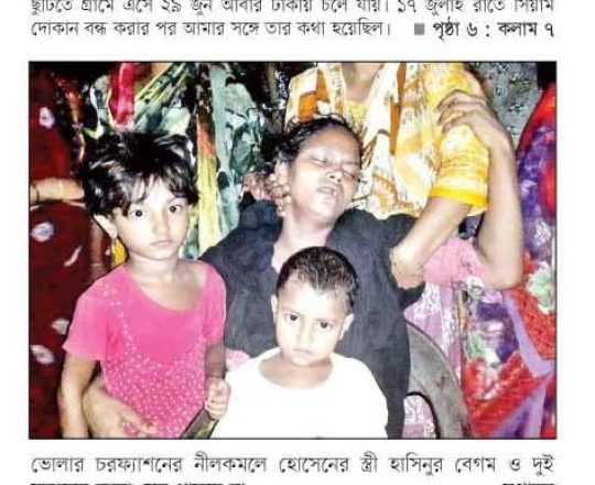 যুগান্তর, ৩ আগস্ট ২০২৪, চরফ্যাশনের ৫ পরিবারে শোকের মাতম