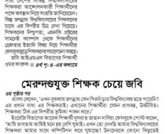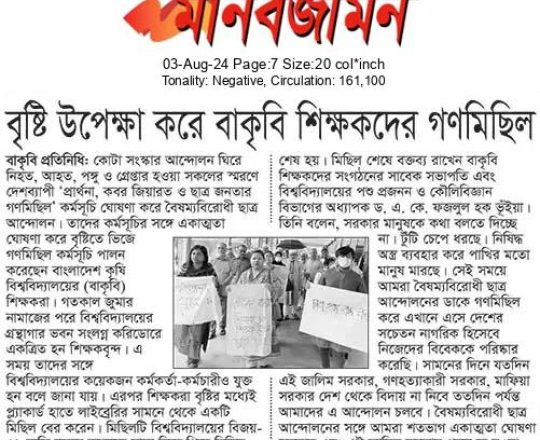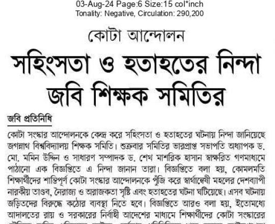 যুগান্তর, ৩ আগস্ট ২০২৪, সহিংসতা ও হতাহতের নিন্দা জবি শিক্ষক সমিতির