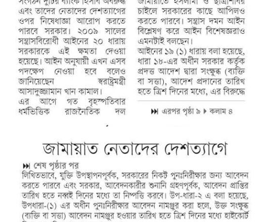 কালবেলা, ৩ আগস্ট ২০২৪, জামায়াত নেতাদের দেশত্যাগে নিষেধাজ্ঞা ও সম্পদ জব্দ করা যাবে