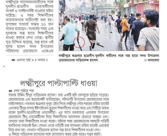 কালবেলা, ৩ আগস্ট ২০২৪, লক্ষ্মীপুরে পাল্টাপাল্টি ধাওয়া, সংঘর্ষ