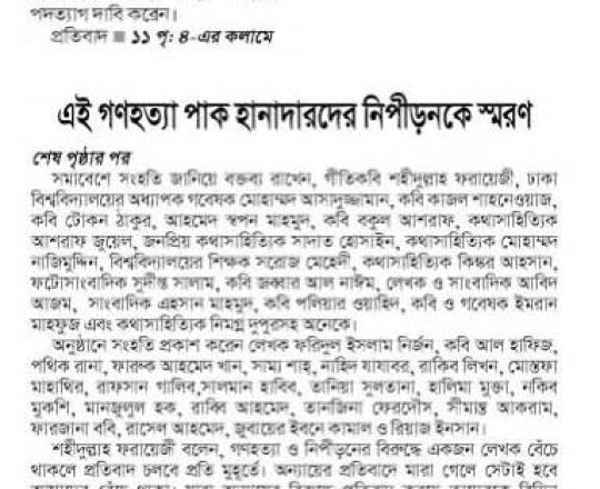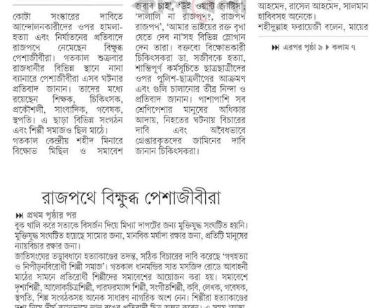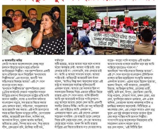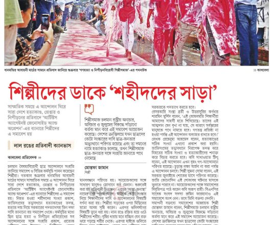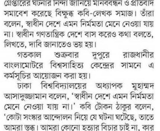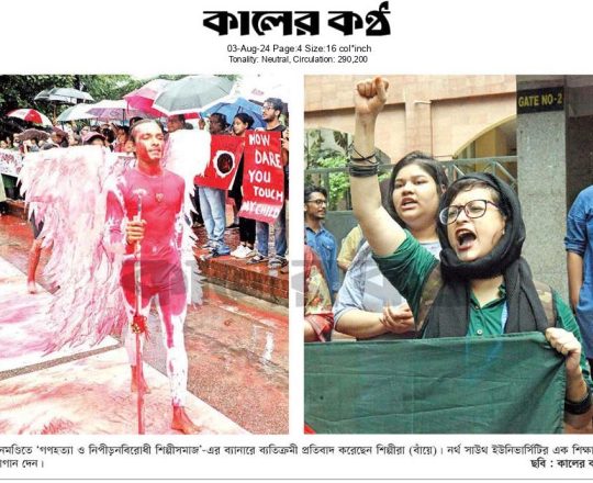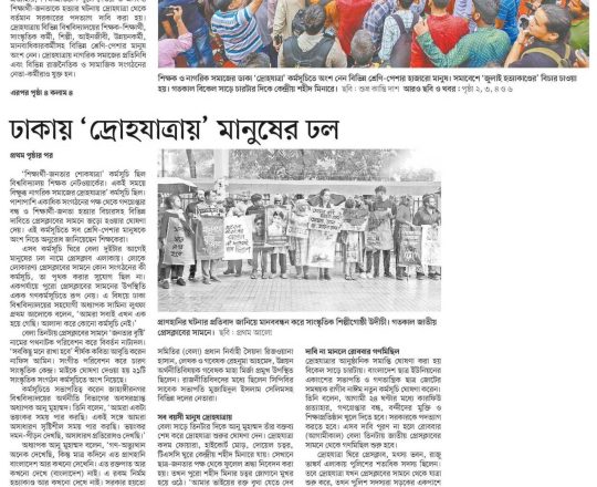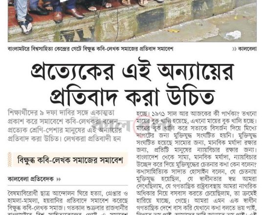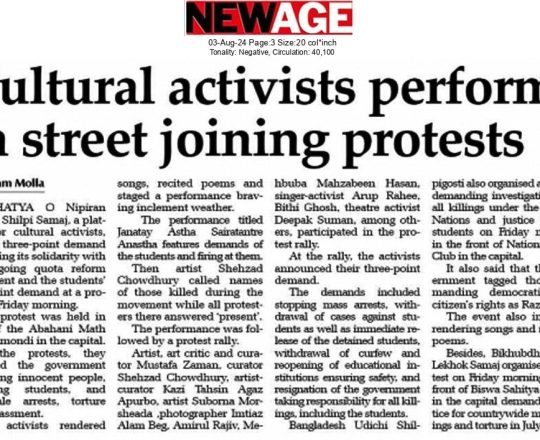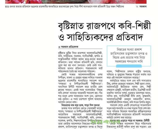 সমকাল, ৩ আগস্ট ২০২৪, বৃষ্টিস্নাত রাজপথে কবি-শিল্পী ও সাহিত্যিকদের প্রতিবাদ