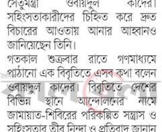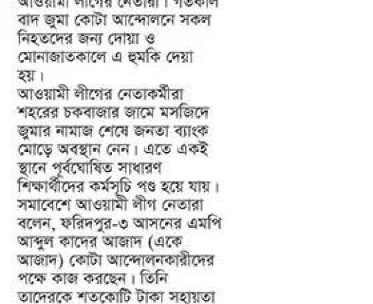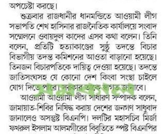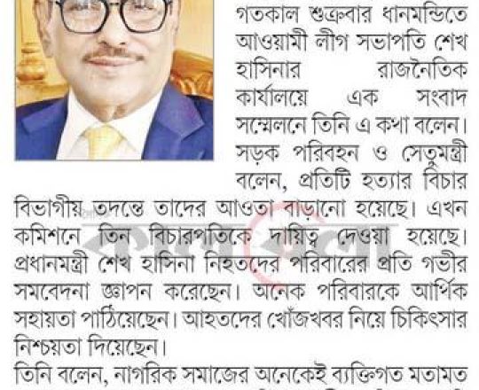 যুগান্তর, ৩ আগস্ট ২০২৪, একটি মহল ফায়দা লোটার অপচেষ্টা করছে- ওবায়দুল কাদের