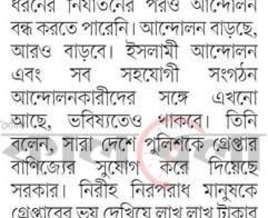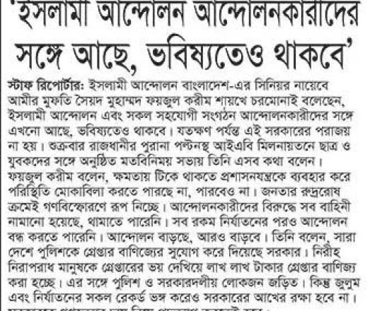যুগান্তর, ৩ আগস্ট ২০২৪, ঐক্যবদ্ধ আন্দোলনে সরকারের পতন ঘটাতে হবে -ইসলামী আন্দোলন