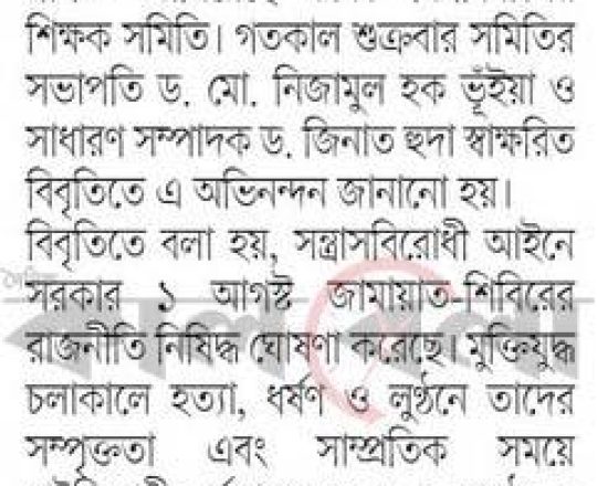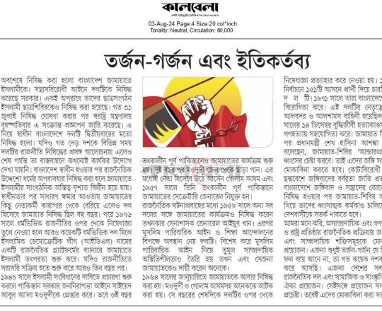 সমকাল, ৩ আগস্ট ২০২৪, জামায়াত নিষিদ্ধের প্রতীক্ষিত পদক্ষেপ