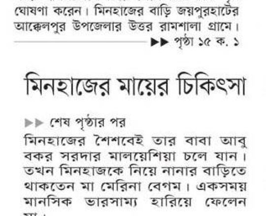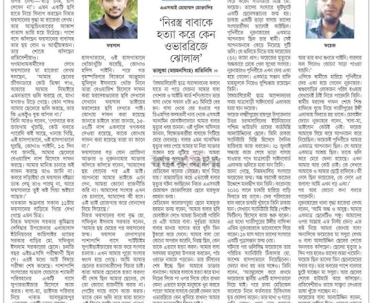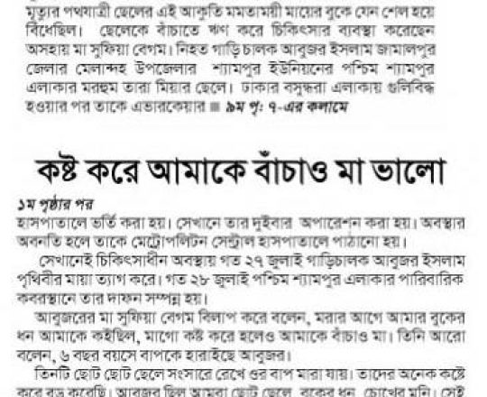 যুগান্তর, ৩ আগস্ট ২০২৪, দেশের মানুষ যেন আমার ছেলেকে ভুলে না যায়