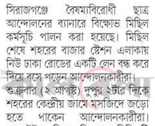 যুগান্তর, ৩ আগস্ট ২০২৪, আজ বিক্ষোভমিছিল, কাল থেকে 'সর্বাত্মক অসহযোগ'