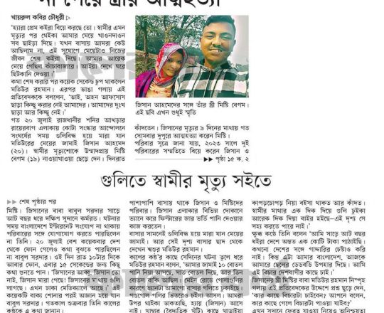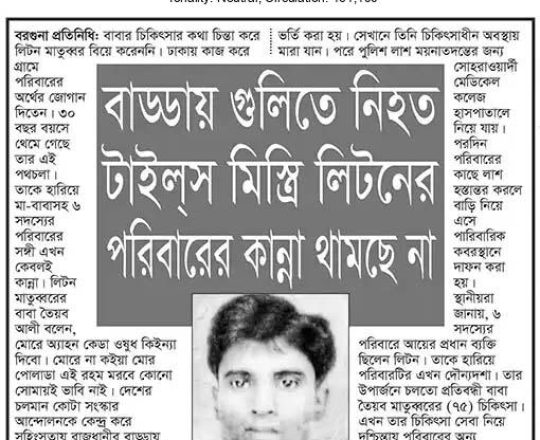 যুগান্তর, ৩ আগস্ট ২০২৪, কোটা আন্দোলনে নিহত এলেনের পরিবারে শোকের মাতম