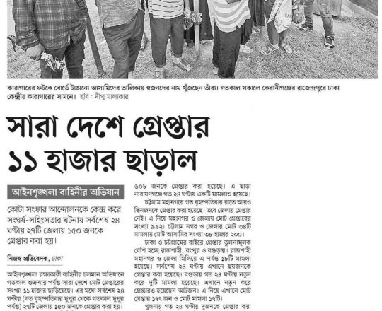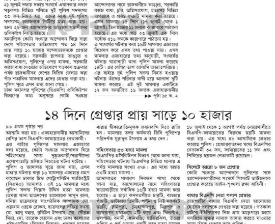প্রথম আলো,৩ আগস্ট সারা দেশে গ্রেপ্তার দাঁড়াল ১১ হাজার