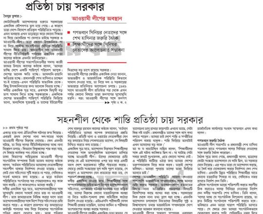 যুগান্তর, ৩ আগস্ট ২০২৪, প্রধানমন্ত্রীর জরুরি বৈঠক সমন্বয়কারীদের সঙ্গে কথা বলতে ৩ জনকে দায়িত্ব