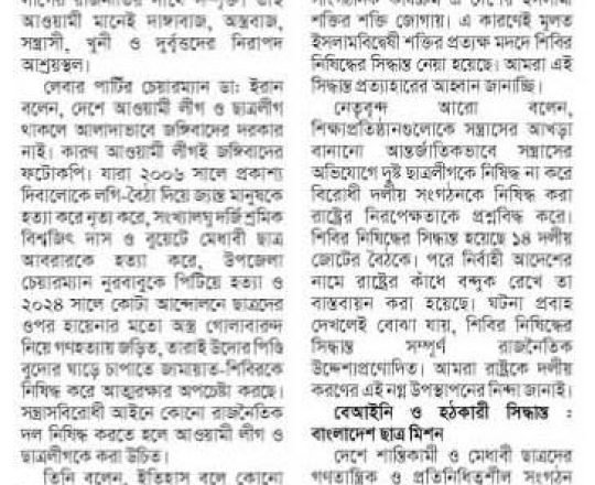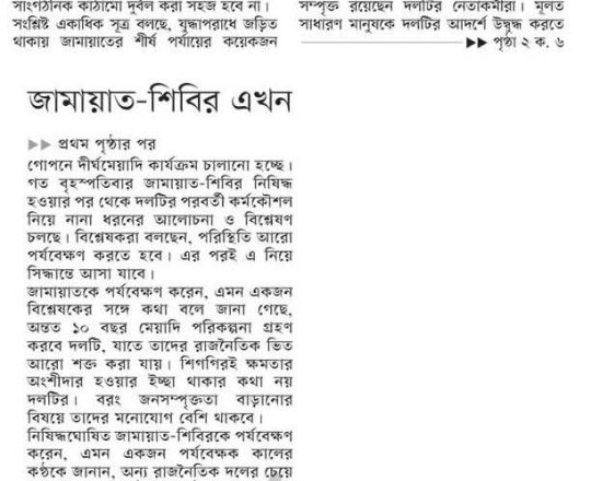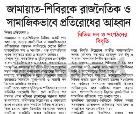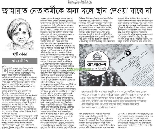 সমকাল, ৩ আগস্ট ২০২৪, জামায়াত নেতাকর্মীকে অন্য দলে স্থান দেওয়া যাবে না