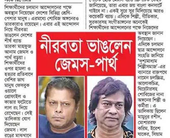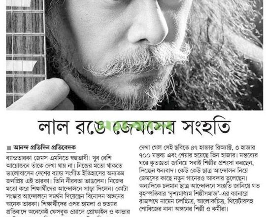 সমকাল, ৩ আগস্ট ২০২৪, লাল রঙে জেমসের সংহতি