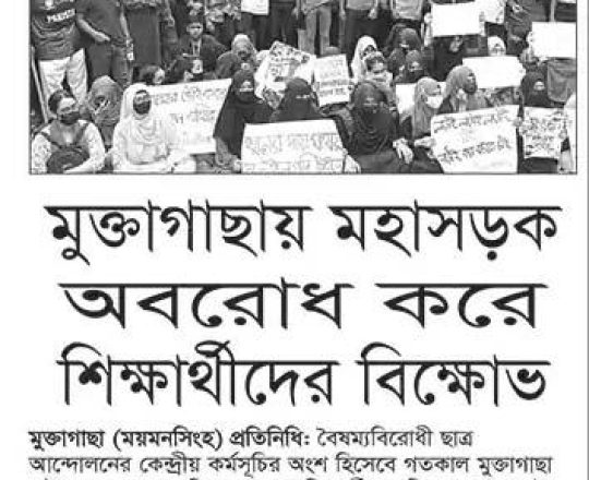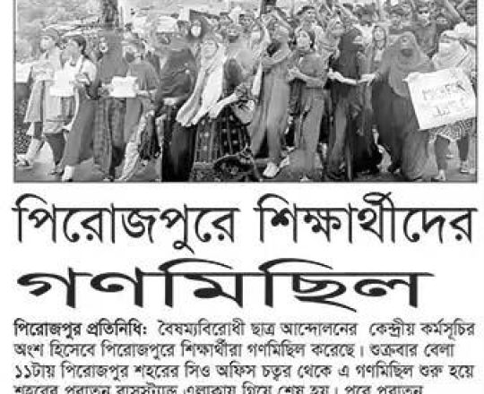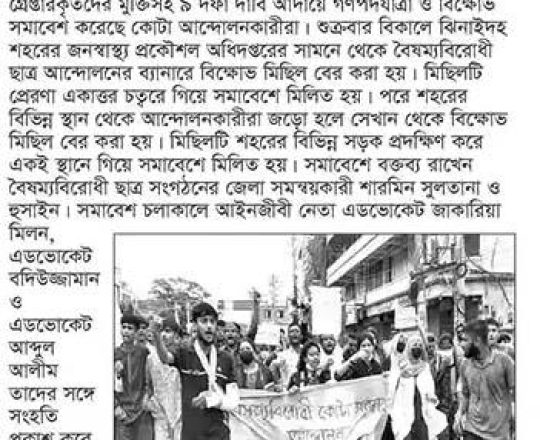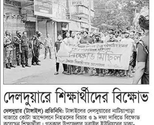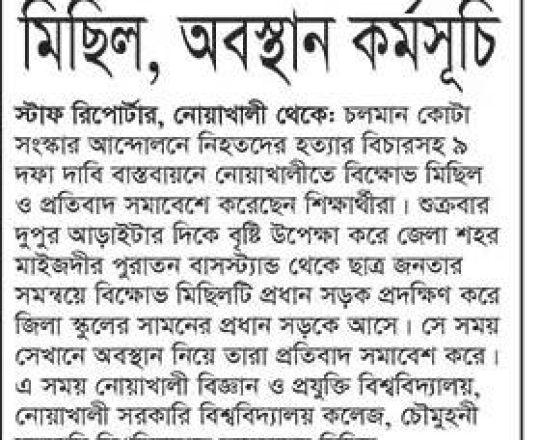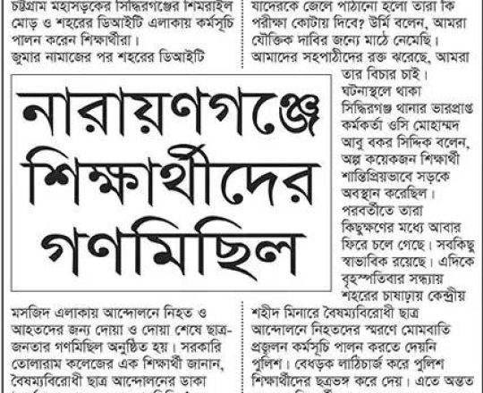 যুগান্তর, ৩ আগস্ট ২০২৪, সিদ্ধিরগঞ্জে গণমিছিল করেছে শিক্ষার্থীরা