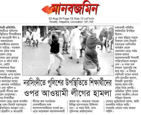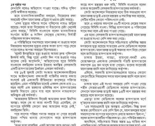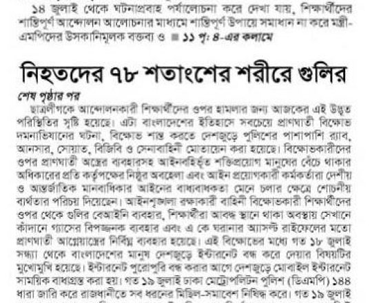 প্রথম আলো, ৩ আগস্ট ২০২৪, বিক্ষোভ দমনে যেভাবে 'রেডলাইন ক্রস' করা হয়েছে