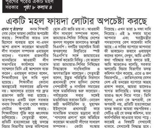 প্রথম আলো, ৩ আগস্ট ২০২৪, সরকারকে ছাত্র হত্যার দায় নিতে হবে