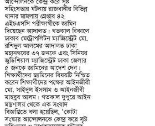 যুগান্তর, ৩ আগস্ট ২০২৪, ৭৮ এইচএসসি পরীক্ষার্থীর জামিন