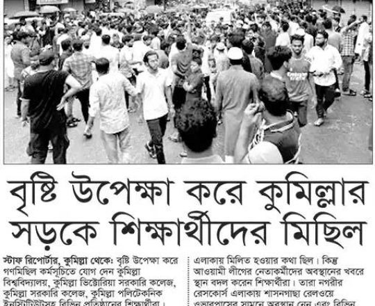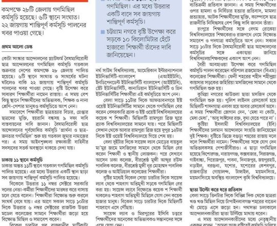 প্রথম আলো, ৩ আগস্ট ২০২৪, ২৮ জেলায় শিক্ষার্থীদের গণমিছিল